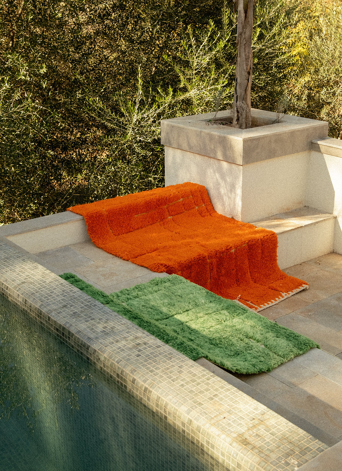 "A blazing sunset, an open window to the south, the rhythm of the sea, the softness of nature...The colors blend the warmth of the setting sun with the depth of the ocean blue." Mathilde Losquin